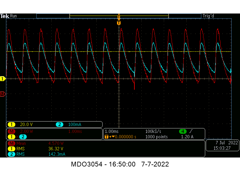 Input voltage still 36V, input power 4.6W (L2 load on or off)